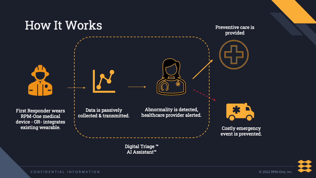 The result of our system is a tech-enabled, proactive model for detecting and responding to changes in health status in a secure and trusted environment. First Responders & Veterans simply opt-in to our program to be monitored 24/7 by a team of trained healthcare professionals.